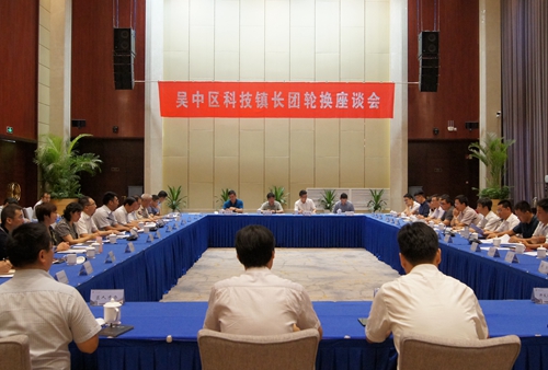 8月16日,吴中区召开欢送第九批科技镇长团暨欢迎第十批新成员座谈会,区委常委、组织部部长张瑛,区委常委、区政府副区长徐行,区政府副区长、第九批科技镇长团团长秦卫明,拟任区政府副区长、第十批科技镇长团团长赵建平出席会议。会议由区科技镇长团工作领导小组办公室主任、区科技局局长沈玉宝主持。