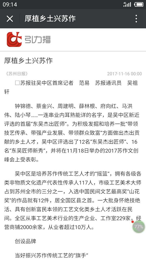 创设品牌 当好振兴苏作传统工艺的“旗手”