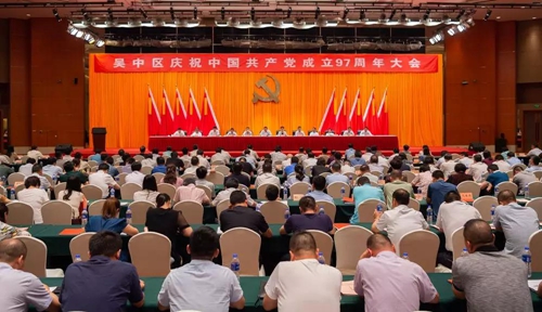 为庆祝中国共产党成立97周年,6月30日上午,吴中区在美丽的太湖之畔举行了庆祝中国共产党成立97周年大会。区委书记唐晓东出席会议并讲话,区委副书记、区长陈嵘主持会议,区四套班子全体现职领导出席庆祝活动。